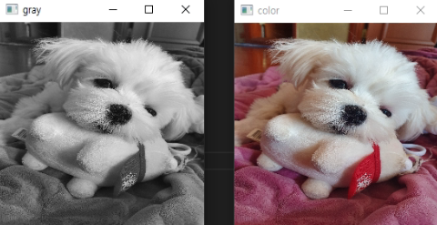 - 강아지 사진 위에 'gray', 'color' 가 창 제목입니다.