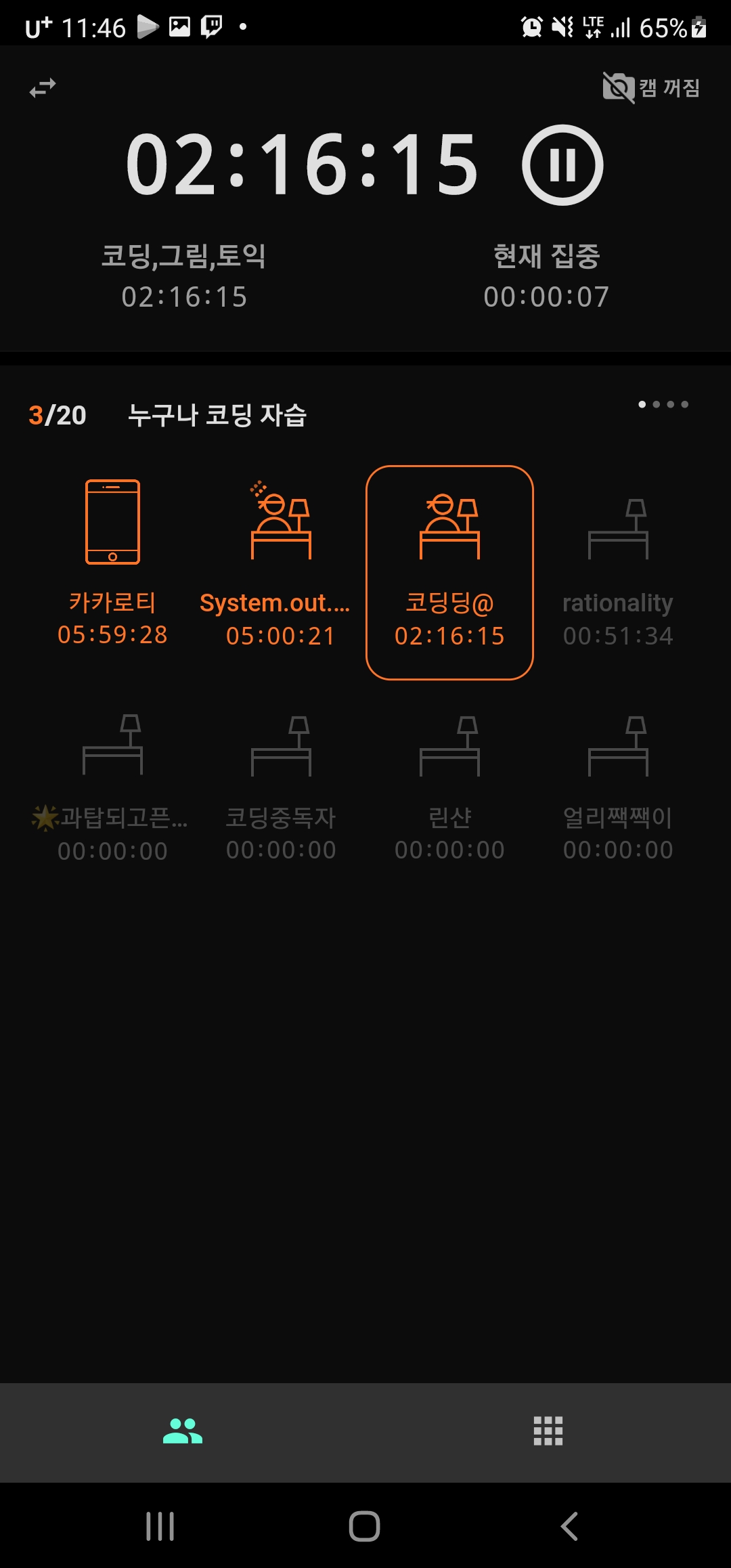 캠 없이 공부를하게되면 딴짓을 좀하게되는거같은데 캠키고 공부하니까 훨씬 공부는 잘됩니다