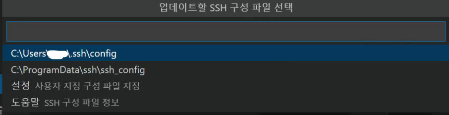 3. F1을 실행하고 ssh를 입력하셔서 Remote-SSH: Open SSH Configuration File... 을 클릭합니다.